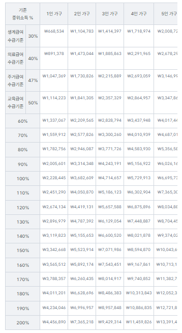 중위 소득표
