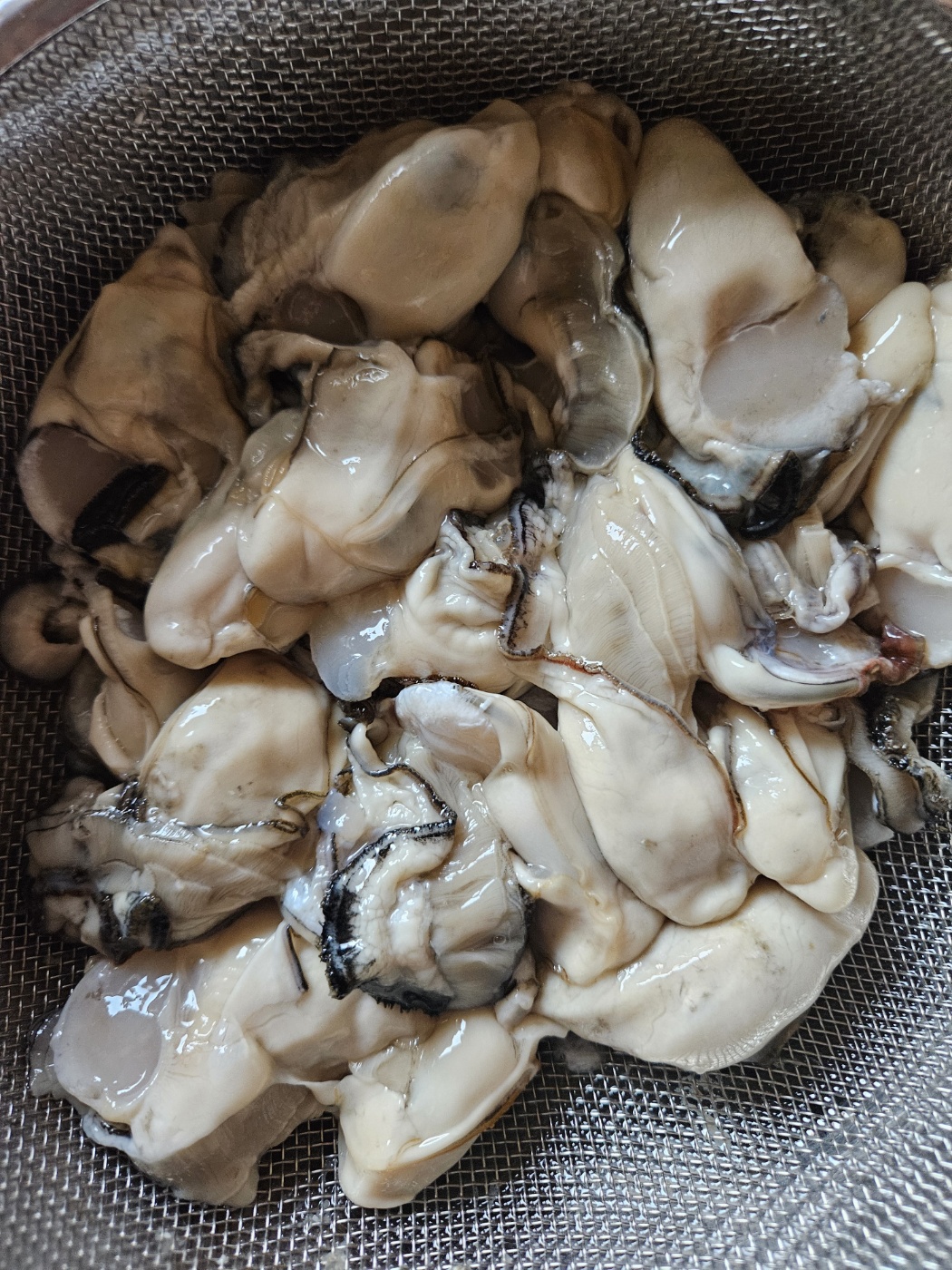 굴은 흐르는 물에 가볍게 씻어줍니다.